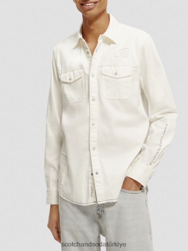 Scotch & Soda Türkiye | Scotch & Soda Ayrıntılı Batı Denim Gömleğini Onarın erkekler F4B4N346 Beyaz kapalı