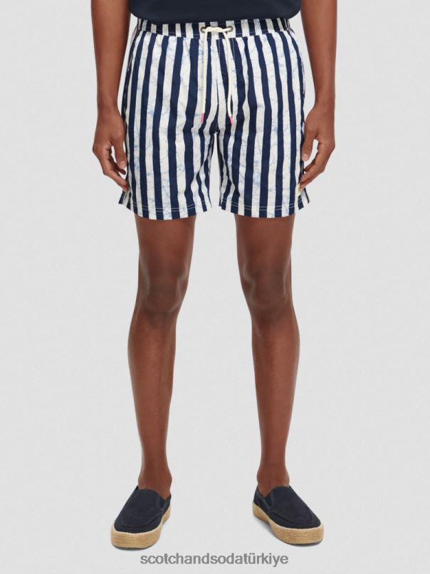 Scotch & Soda Türkiye | Scotch & Soda Basılı orta uzunlukta yüzme şort erkekler F4B4N679 mavi kravat boya şerit