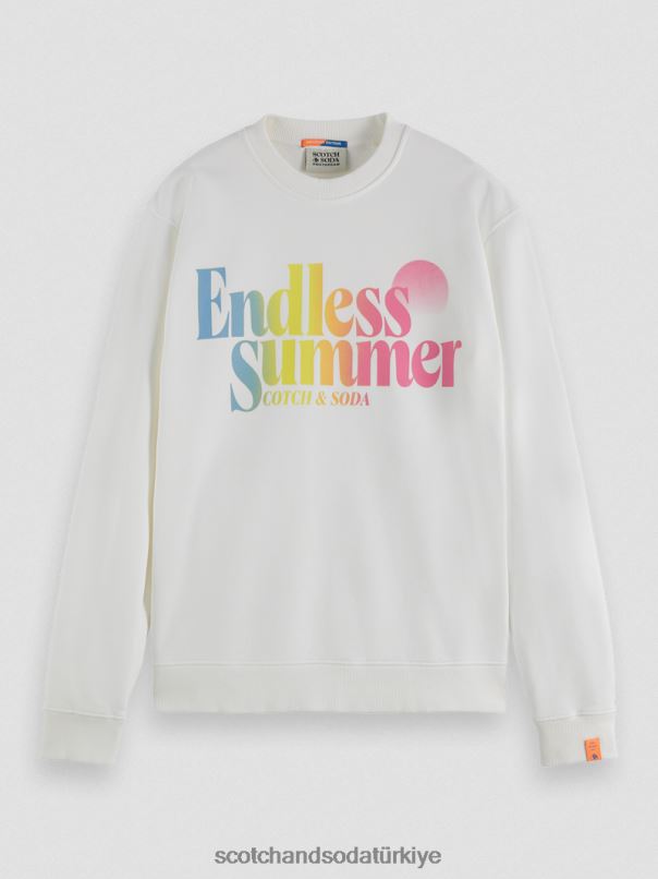 Scotch & Soda Türkiye | Scotch & Soda Düzenli uygun giysi boyalı grafik mürettebat sweatshirt erkekler F4B4N543 beyaz