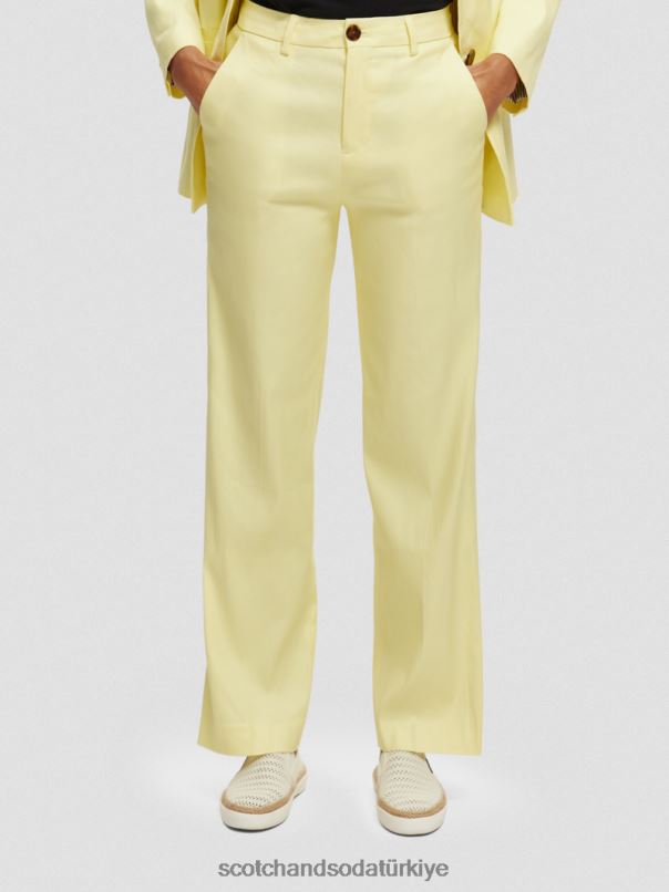 Scotch & Soda Türkiye | Scotch & Soda Edie Yüksek katlı geniş bacaklı keten karıştırılmış pantolonlar kadınlar F4B4N162 patlamış mısır