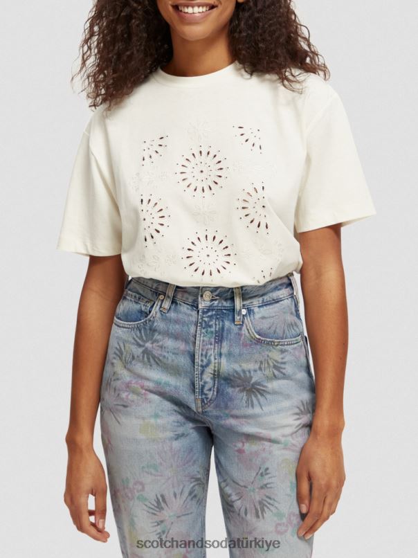 Scotch & Soda Türkiye | Scotch & Soda Gevşek fit işlemeli sanat eserleri tişört kadınlar F4B4N90 vanilya beyaz