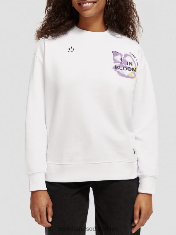 Scotch & Soda Türkiye | Scotch & Soda Gevşek Fit Organik Pamuk Sweatshirt kadınlar F4B4N186 beyaz