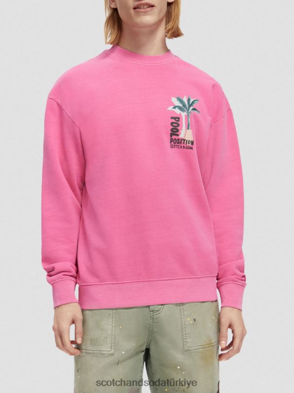 Scotch & Soda Türkiye | Scotch & Soda giysi boyalı sanat eseri sweatshirt erkekler F4B4N531 cerise