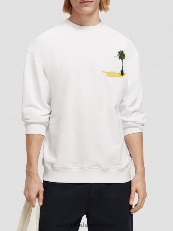 Scotch & Soda Türkiye | Scotch & Soda giysi boyalı sanat eseri sweatshirt erkekler F4B4N532 beyaz