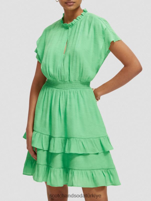 Scotch & Soda Türkiye | Scotch & Soda fırfırlı katmanlı mini elbise kadınlar F4B4N21 parlak mavi