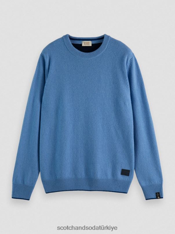 Scotch & Soda Türkiye | Scotch & Soda Kontrast Kesilmiş Kaşmir Crewneck Sweater erkekler F4B4N638 gökyüzü