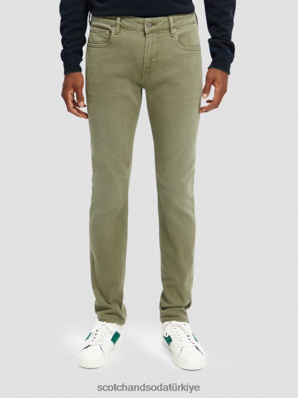 Scotch & Soda Türkiye | Scotch & Soda Skim Super Slim Fit giysi boyalı kot pantolon erkekler F4B4N582 askeri yeşil