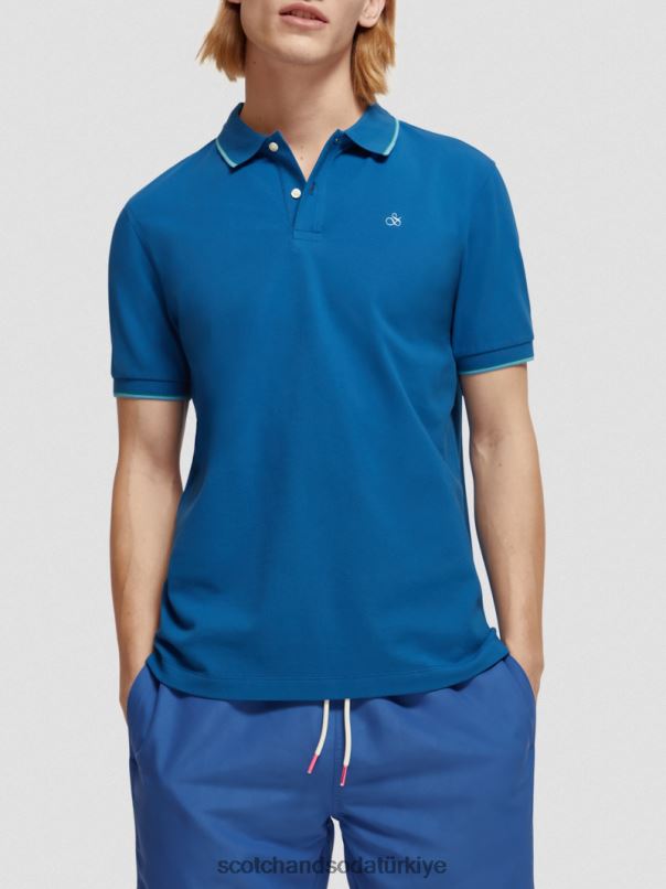 Scotch & Soda Türkiye | Scotch & Soda uçlu organik pamuklu polo erkekler F4B4N451 Riviera mavisi