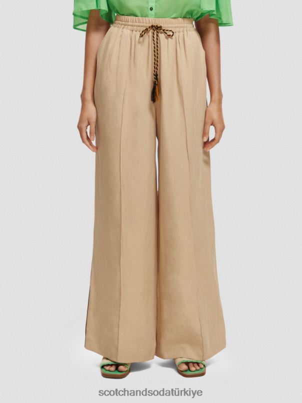 Scotch & Soda Türkiye | Scotch & Soda Umut yüksek katlı geniş bacak pantolonları kadınlar F4B4N163 yumuşak kum