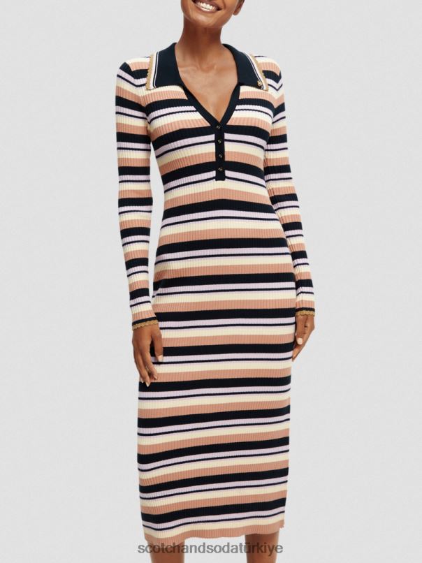Scotch & Soda Türkiye | Scotch & Soda Uzun kollu kaburga örgü polo midi elbise kadınlar F4B4N14 donanma