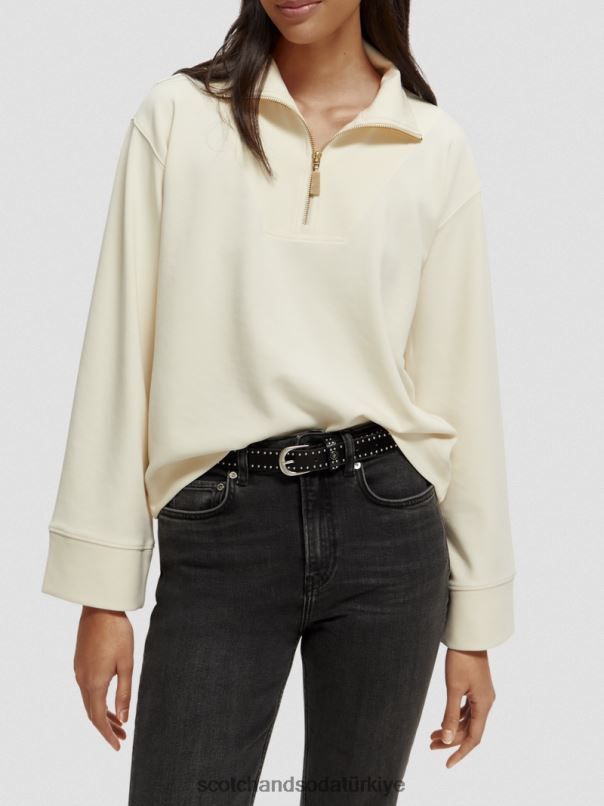 Scotch & Soda Türkiye | Scotch & Soda Yarım Zip Trompet ile Sweatshirt kadınlar F4B4N192 vanilya beyaz