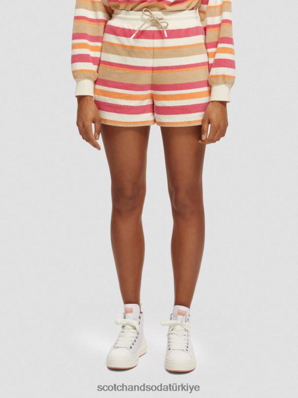 Scotch & Soda Türkiye | Scotch & Soda Yüksek katlı çizgili şort kadınlar F4B4N179 vanilya beyaz
