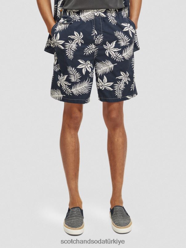 Scotch & Soda Türkiye | Scotch & Soda Basılı Poplin Bermuda Şort erkekler F4B4N616 lacivert yaprağı