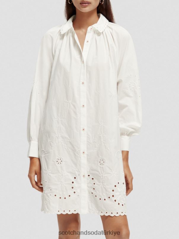 Scotch & Soda Türkiye | Scotch & Soda Broderie Anglaise gömlek elbisesi kadınlar F4B4N6 beyaz