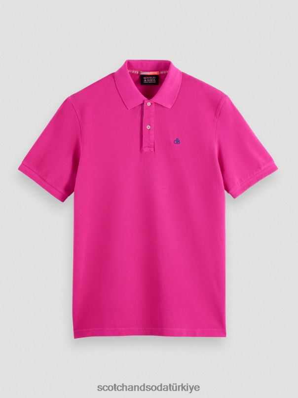 Scotch & Soda Türkiye | Scotch & Soda giysi boyalı pike organik pamuk polo erkekler F4B4N402 cerise