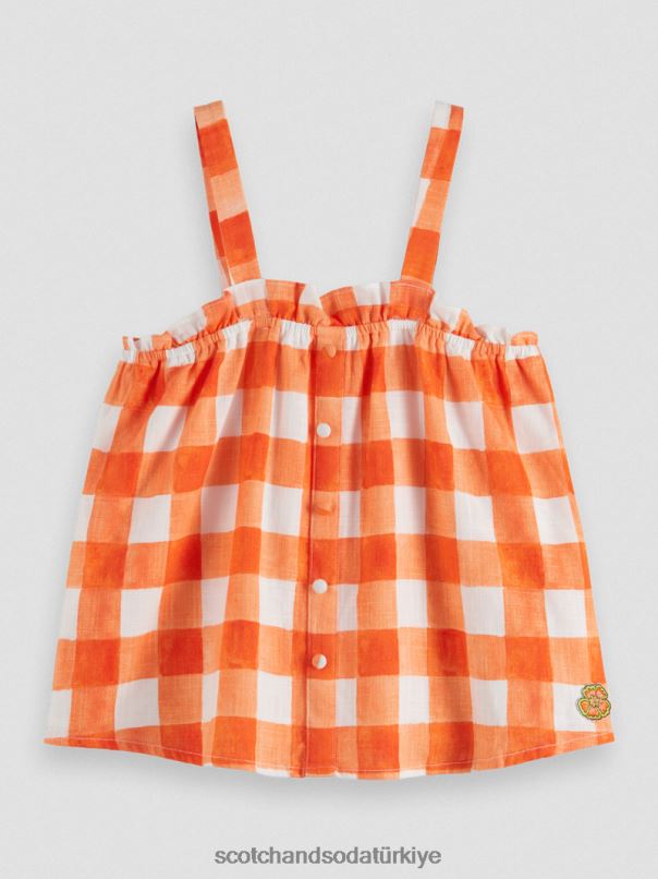 Scotch & Soda Türkiye | Scotch & Soda Kontrol edilen keten karıştırılmış üst çocuk F4B4N746 Papaya Bistro Kontrolü