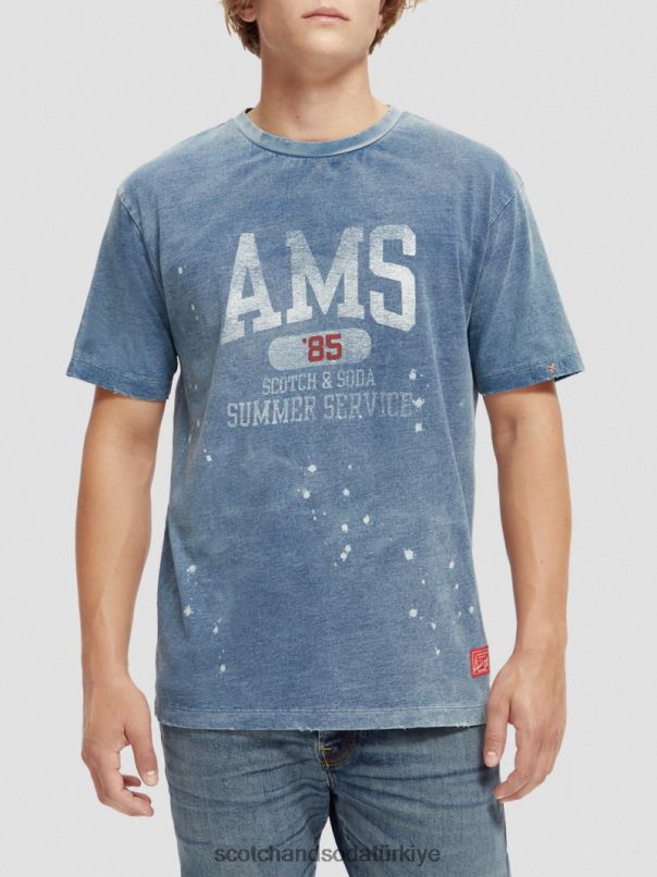 Scotch & Soda Türkiye | Scotch & Soda Organik pamuklu grafik tişört erkekler F4B4N469 yıkanmış çivit