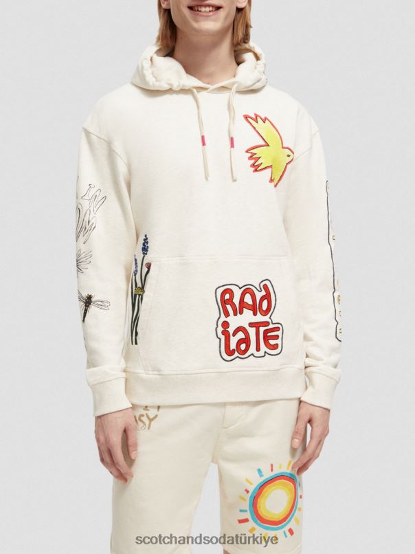 Scotch & Soda Türkiye | Scotch & Soda Rahat Fit Artwork Hoodie erkekler F4B4N548 Beyaz kapalı