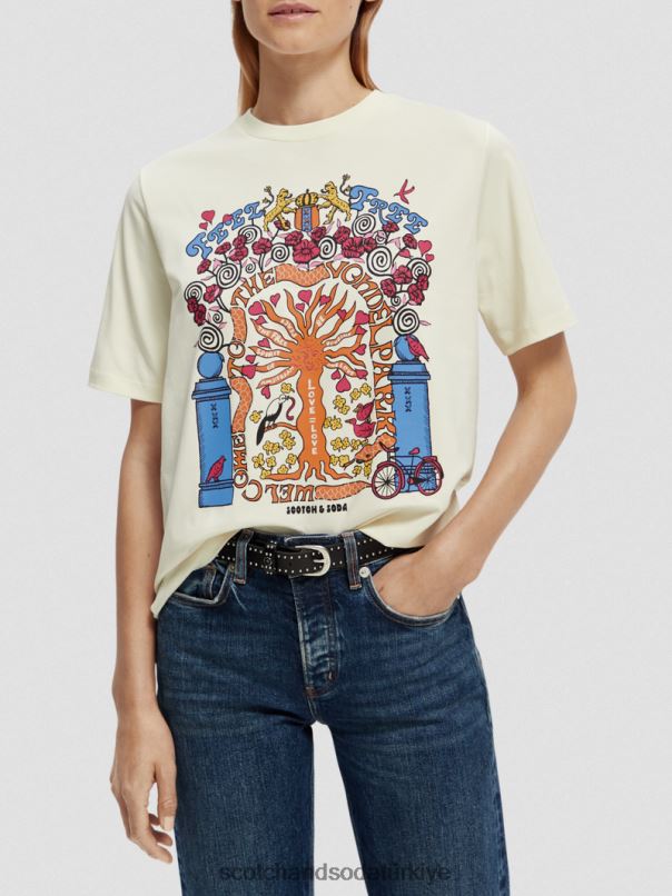 Scotch & Soda Türkiye | Scotch & Soda Rahat Fit Artwork Organik Pamuk T-Shirt kadınlar F4B4N98 beyaz