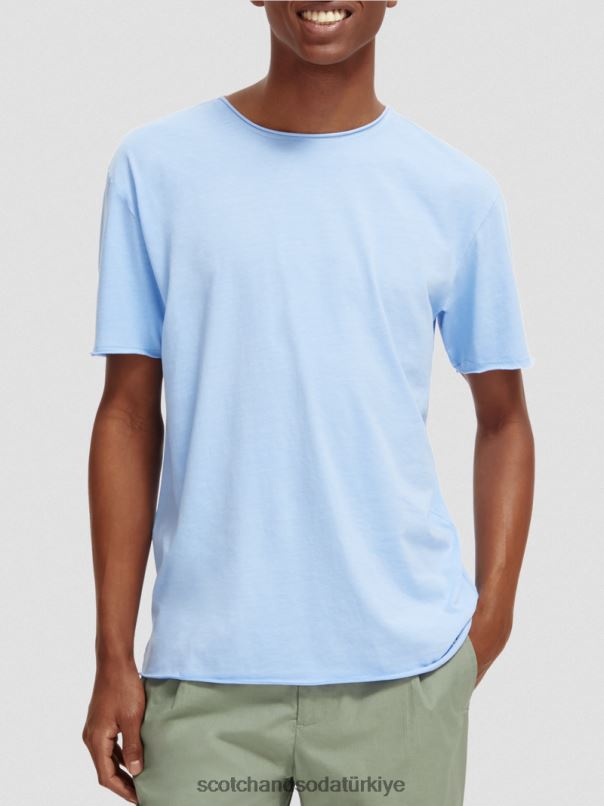 Scotch & Soda Türkiye | Scotch & Soda Rahat Fit Raw Edge T-Shirt erkekler F4B4N383 deniz mavisi