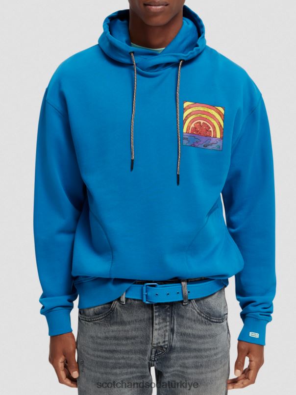 Scotch & Soda Türkiye | Scotch & Soda rahat sanat eseri organik pamuklu kapüşonlu erkekler F4B4N526 iris mavisi