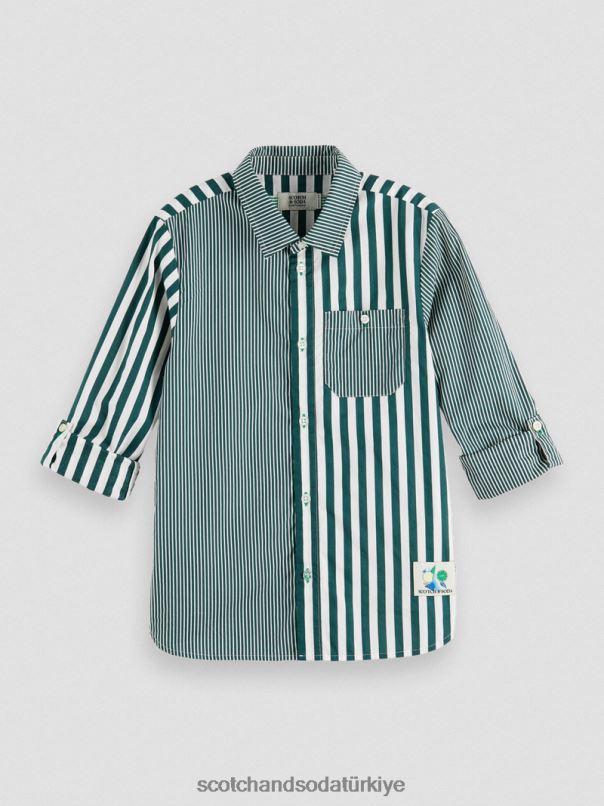 Scotch & Soda Türkiye | Scotch & Soda Şövalye ayarlı şerit gömleğini karıştırın ve eşleştirin çocuk F4B4N797 yeşil şerit