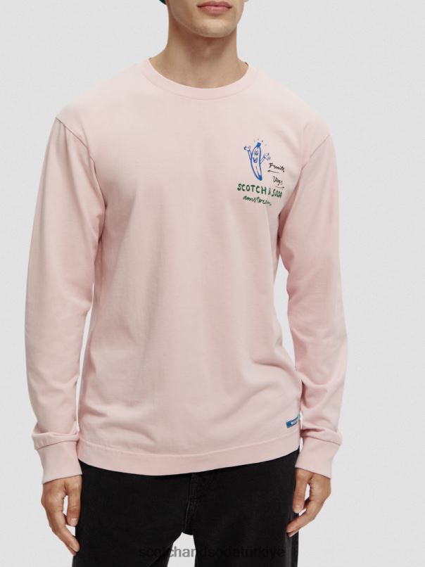 Scotch & Soda Türkiye | Scotch & Soda Uzun kollu sanat eseri organik pamuklu tişört erkekler F4B4N392 gül